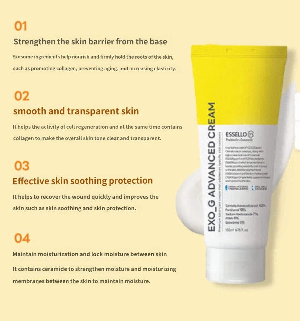 Exo_G Advanced Cream provides excellent moisture and quick soothing to keep your skin moist and hydrated.
